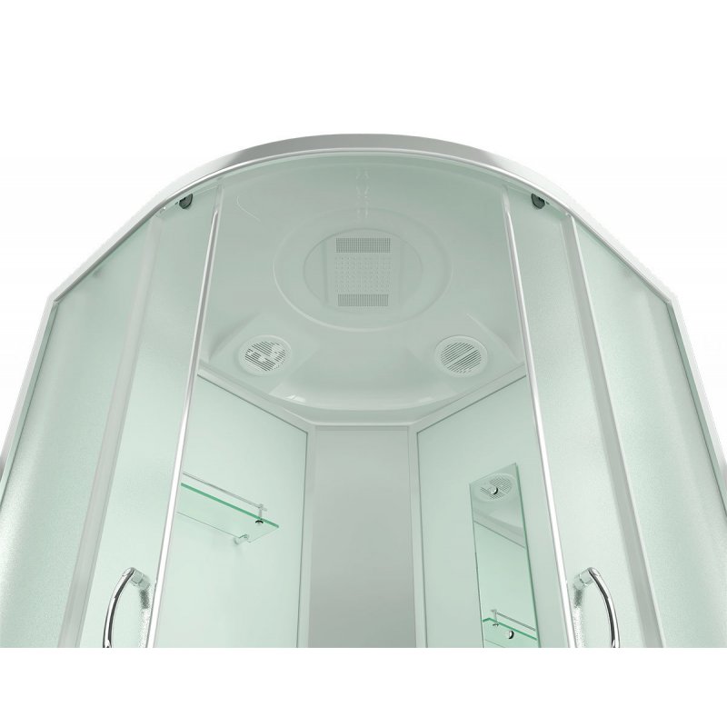Тропический душ, ручной душ, зеркало, полочка задняя стенка - белая дверцы - матовые