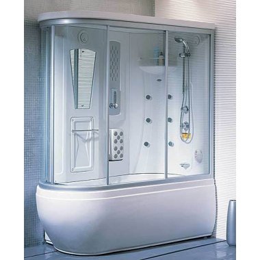 Турецкая баня, верхний и ручной душ, вертикальный массаж, масажер ног, радио, электронная панель управления, подсветка в кабине, подключение к CD или разъем USB, прием телефонных звонков, озонирование, сидение, смеситель, вентиляция, гидромассаж в ванной, высокий поддон, слив