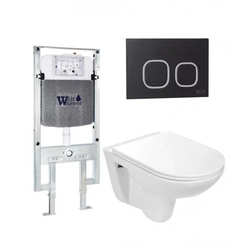 Комплект WeltWasser AMBERG 497 ST + BAARBACH 004 GL-WT + AMBERG RD-BL инсталляция с унитазом и кнопкой смыва