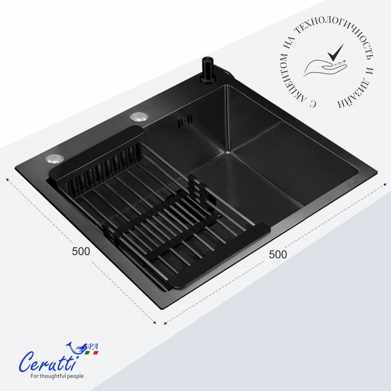 Мойка кухонная Cerutti SPA GLORIA50B nano black