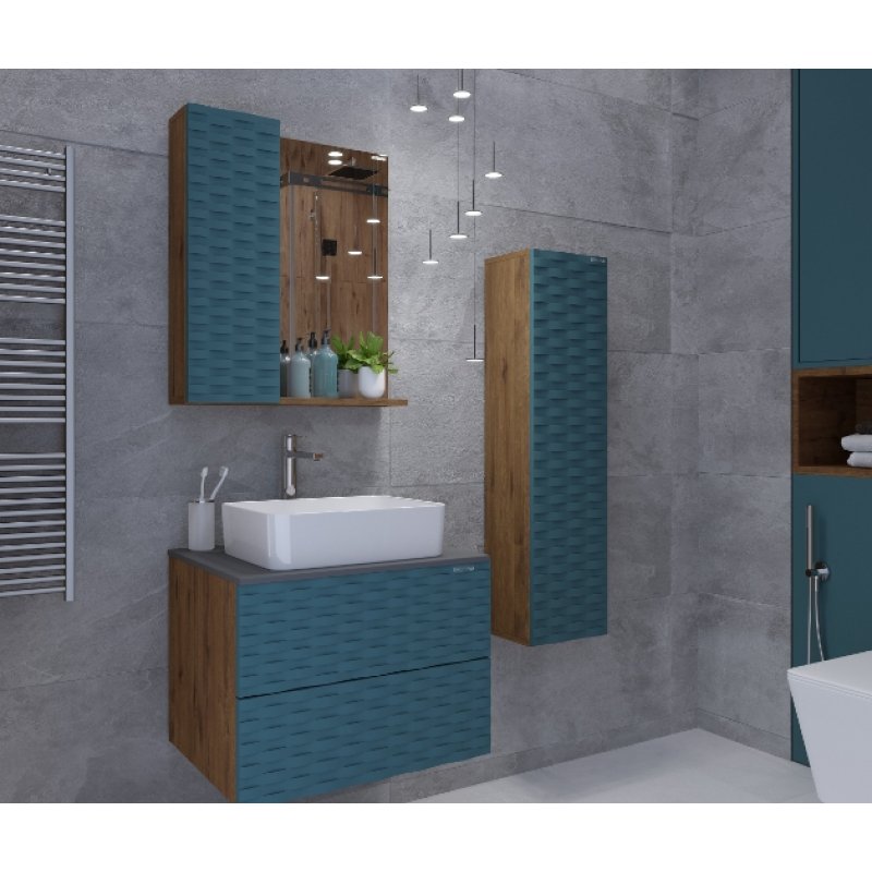 Подвесной пенал Альба-30 см. Матовая фактура в цвете Бриз с 3D рисунком безупречно сочетается с фактурой под дерево и позволяет тумбе органично вписаться в интерьер ванной комнаты.