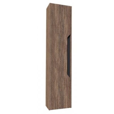 Пенал выполнен из влагостойких материалов устойчивых к перепадам температуры и высокой влажности. Корпус и фасады - МДФ в пленке винтажное дерево темное, вставки из ЛДСП графит.