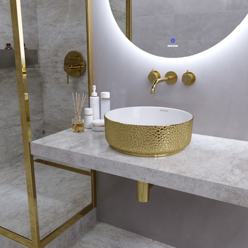 Раковина Grossman GR-5010GWL накладная, золото белая