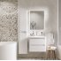 Тумба выполнена из влагостойкого МДФ покрытая белой глянцевой краской, устойчивая к перепадам температур и высокой влажности, крепится к стене и занимает мало места.