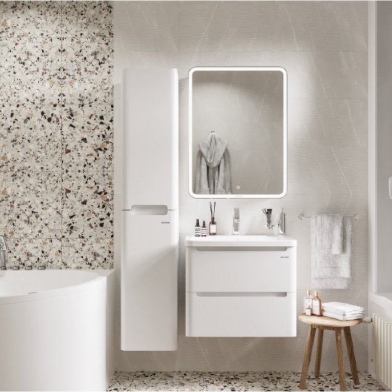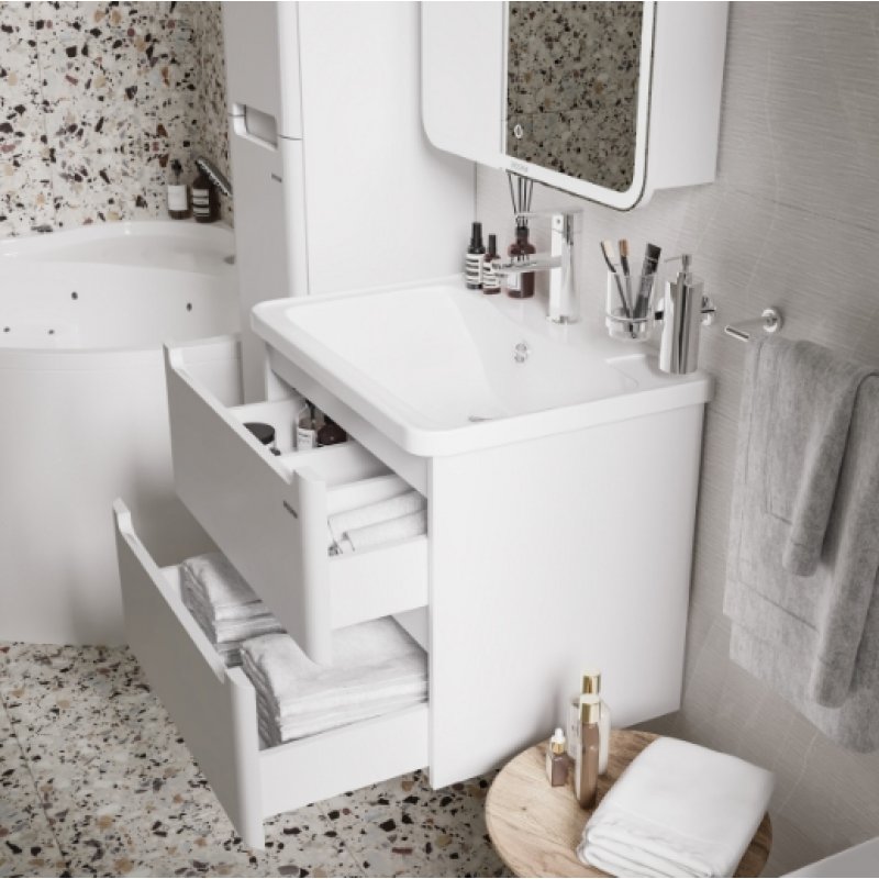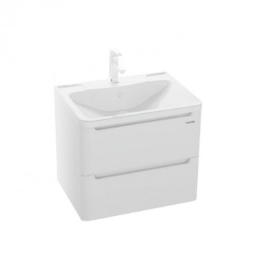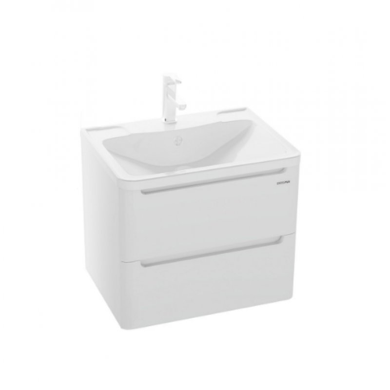 Тумба подвесная Grossman "АДЕЛЬ-60 см" с 2-я ящиками белая - в белом глянцевом цвете, интегрированные ручки добавляют современный дизайн и строгий стиль.