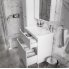 Тумба выполнена из влагостойкого МДФ покрытая белой глянцевой краской, устойчивая к перепадам температур и высокой влажности, крепится к стене.