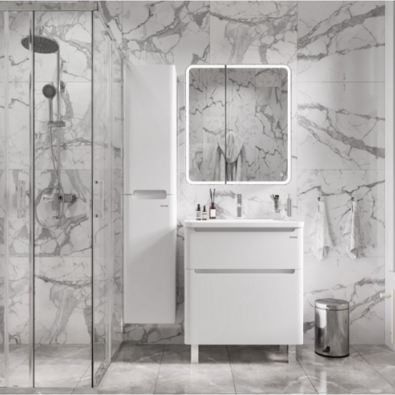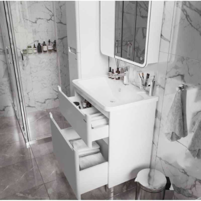 Тумба напольная Grossman "АДЕЛЬ-70 см" с 2-я ящиками белая - в белом глянцевом цвете, интегрированные ручки добавляют современный дизайн и строгий стиль.