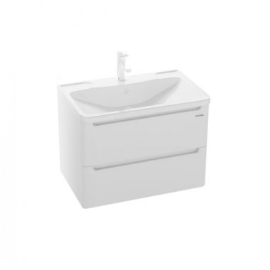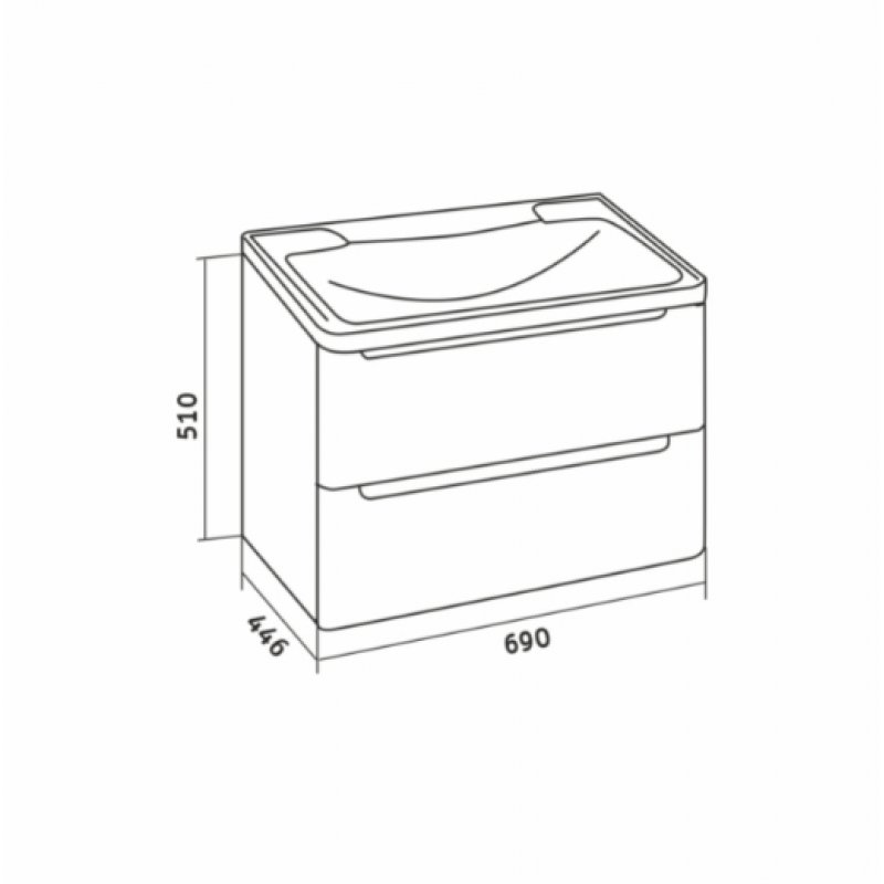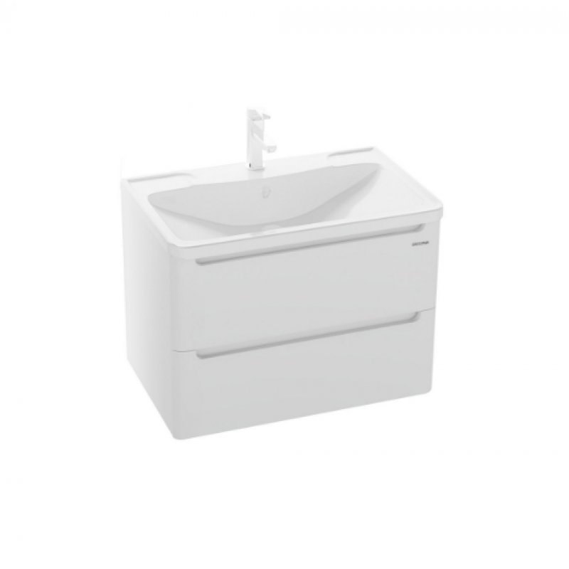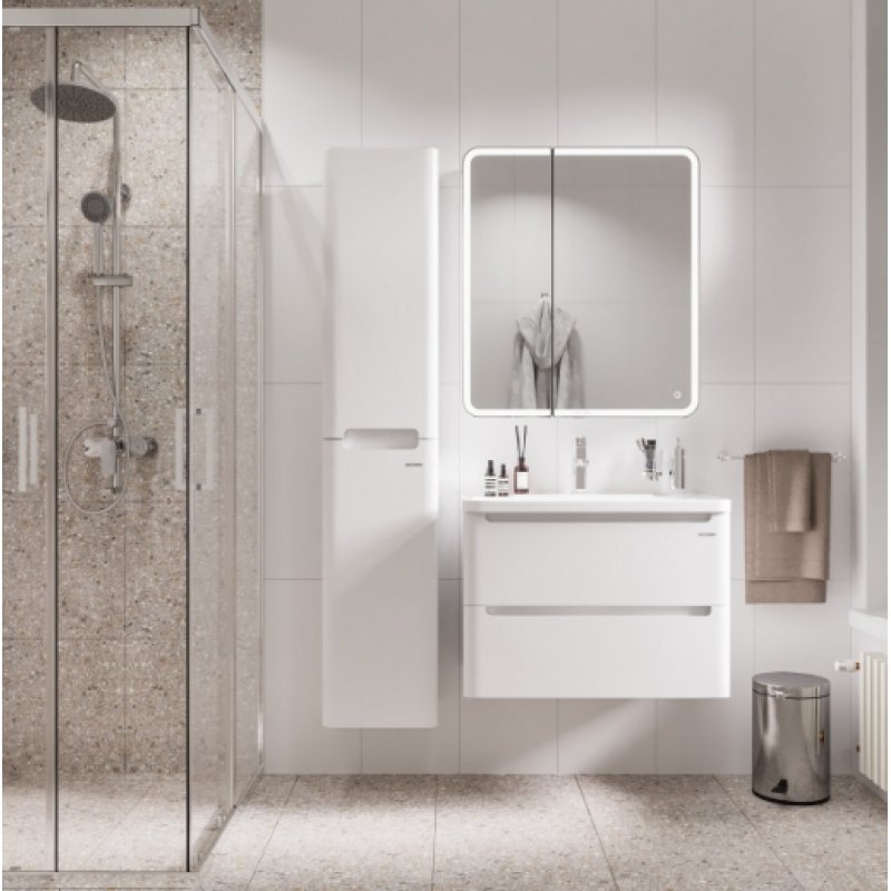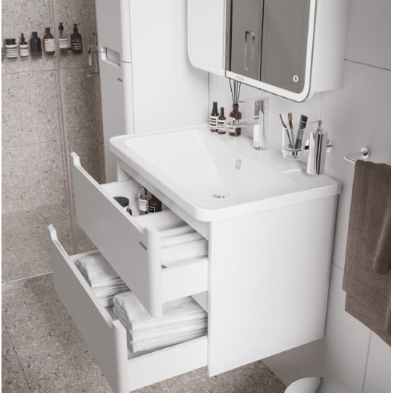 Тумба подвесная Grossman "АДЕЛЬ-70 см" с 2-я ящиками белая - в белом глянцевом цвете, интегрированные ручки добавляют современный дизайн и строгий стиль.