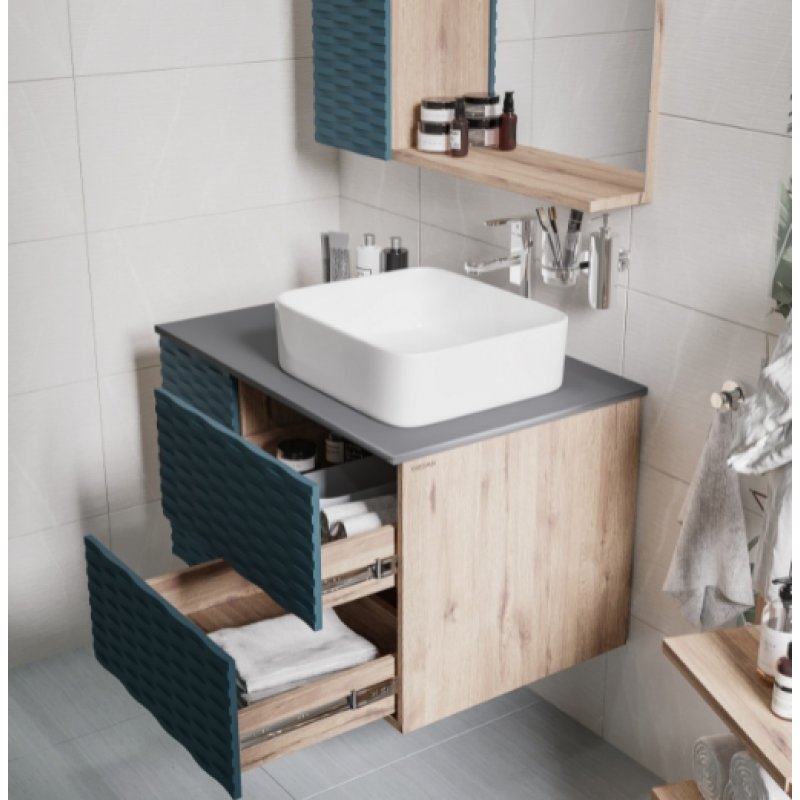 Тумба подвесная Grossman "АЛЬБА-80 см" с 2-я ящ. Веллингтон/бриз - функциональное и практичное исполнение. Матовая фактура в цвете Бриз с 3D рисунком безупречно сочетается с фактурой под дерево и позволяет тумбе органично вписаться в интерьер ванной комнаты.