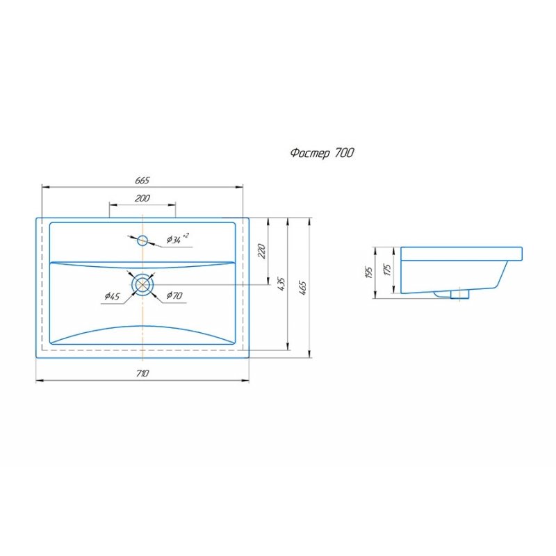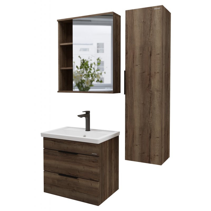 Тумба с раковиной Grossman ФОРТА-70 см 2 ящ. темный дуб галифакс подвесная