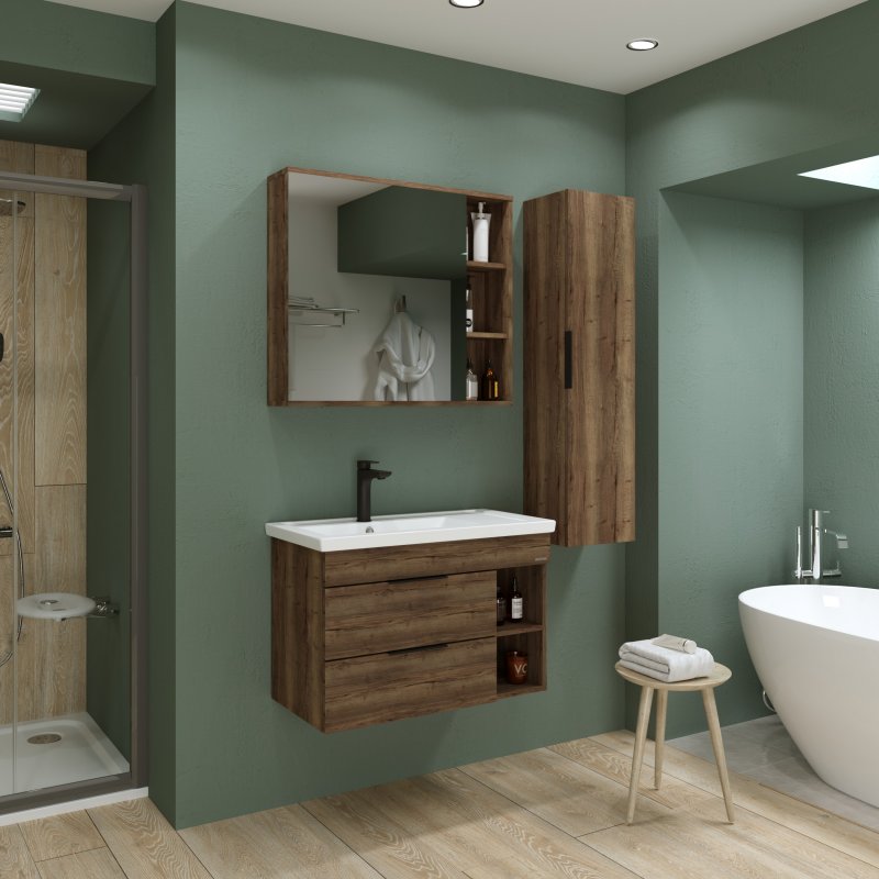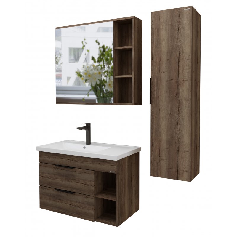 Тумба с раковиной Grossman ФОРТА-80 см 2 ящ. темный дуб галифакс подвесная