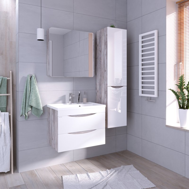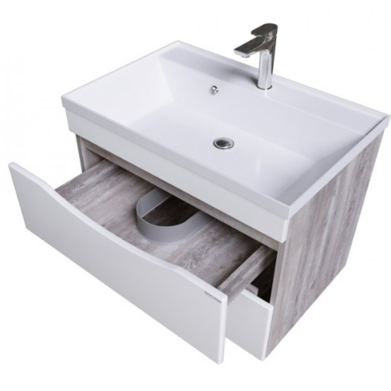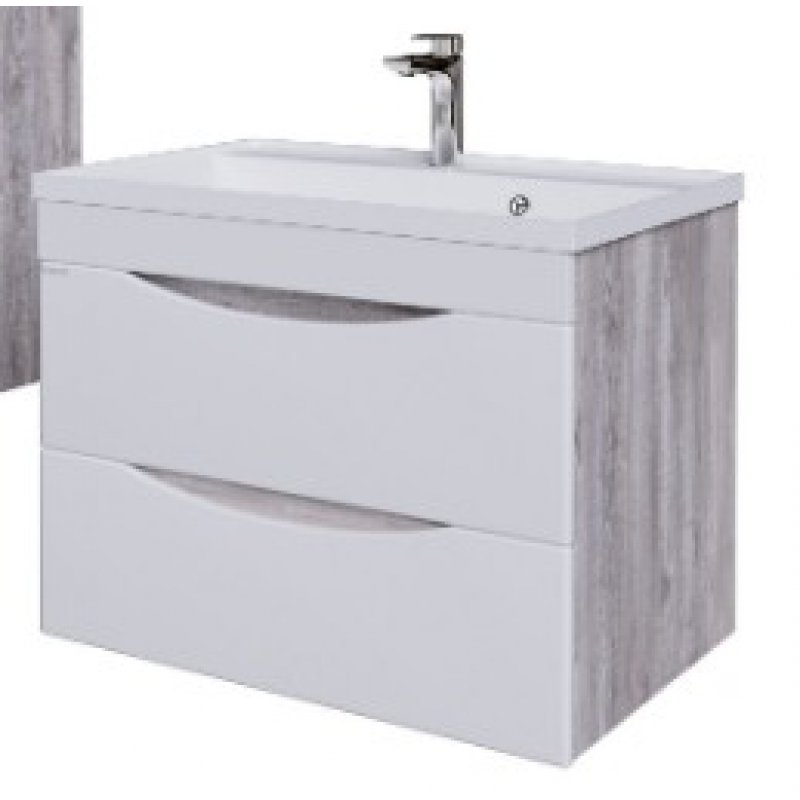 Тумба с раковиной Grossman Талис-80 см подвесная бетон пайн/белый глянец