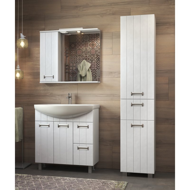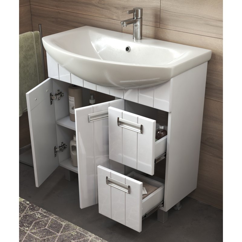 Тумба с раковиной Vigo Diana 80 Тумба с раковиной Diana 80Размер ш*г*в (см): 80х47х83Материал корпуса: ЛДСППокрытие корпуса: матовоеМатериал фасада: МДФПокрытие фасада: глянцевоеЦвет: белыйМонтаж: напольныйФорма: прямоугольнаяВ комплекте: раковина, ножкиСтиль: современный Hi-TechФурнитура: хромРаковина: Балтика 80, СантекМатериа... Читать полностью →