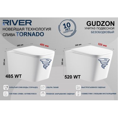 Унитаз RIVER GUDZON 485 WT подвеснойУНИТАЗ ПОДВЕСНОЙ БЕЗОБОДКОВЫЙТехнология слива TORNADO. БЕСШУМНЫЙ.АнтивсплескГоризонтальный выпускСиденье: тонкое, быстросъёмное, с микролифтом.Цвет: белый глянец... Читать полностью →