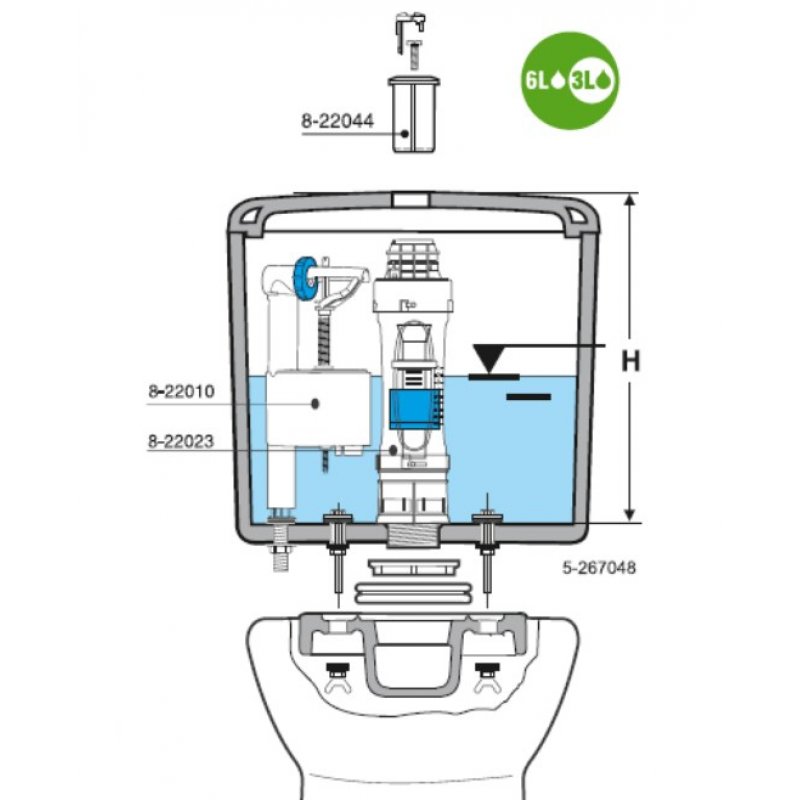 Объём смывания бачка, л: 3/6