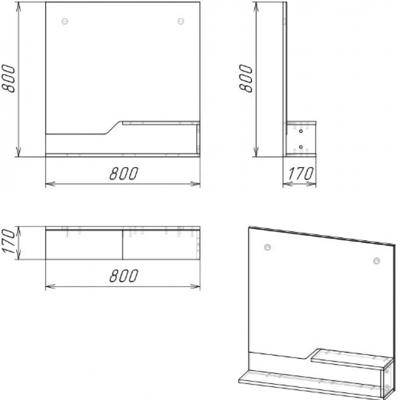 Зеркало Grossman Лайф 80 см, с полками, дерево темное/графитЗеркало Лайф 80 см выглядит оригинально и эксклюзивно. Ассиметричные линии и детали придают динамики ванной комнате. Двуярусная открытая полка дает быстрый доступ к косметике и предметам гигиены. Пленка в цвете графит на задней стенке защищает зеркальную поверхность от ... Читать полностью →