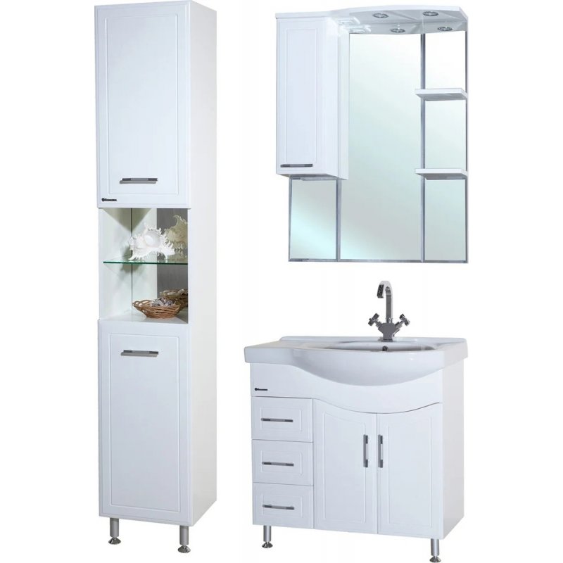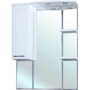 Зеркало-шкаф Bellezza Коралл 85L белое с подсветкойГабариты (Ш Г В): 78x22x100 смМатериал корпуса: ДСППокрытие корпуса: эмальВнешний светильникС электровыключателем (механической кнопкой)Фурнитура: хромЗеркало с розеткойС механизмом доводчика, обеспечивающим плавное закрываниеОснащение зеркала: подвесыГарантия: 3 годаРоссия... Читать полностью →